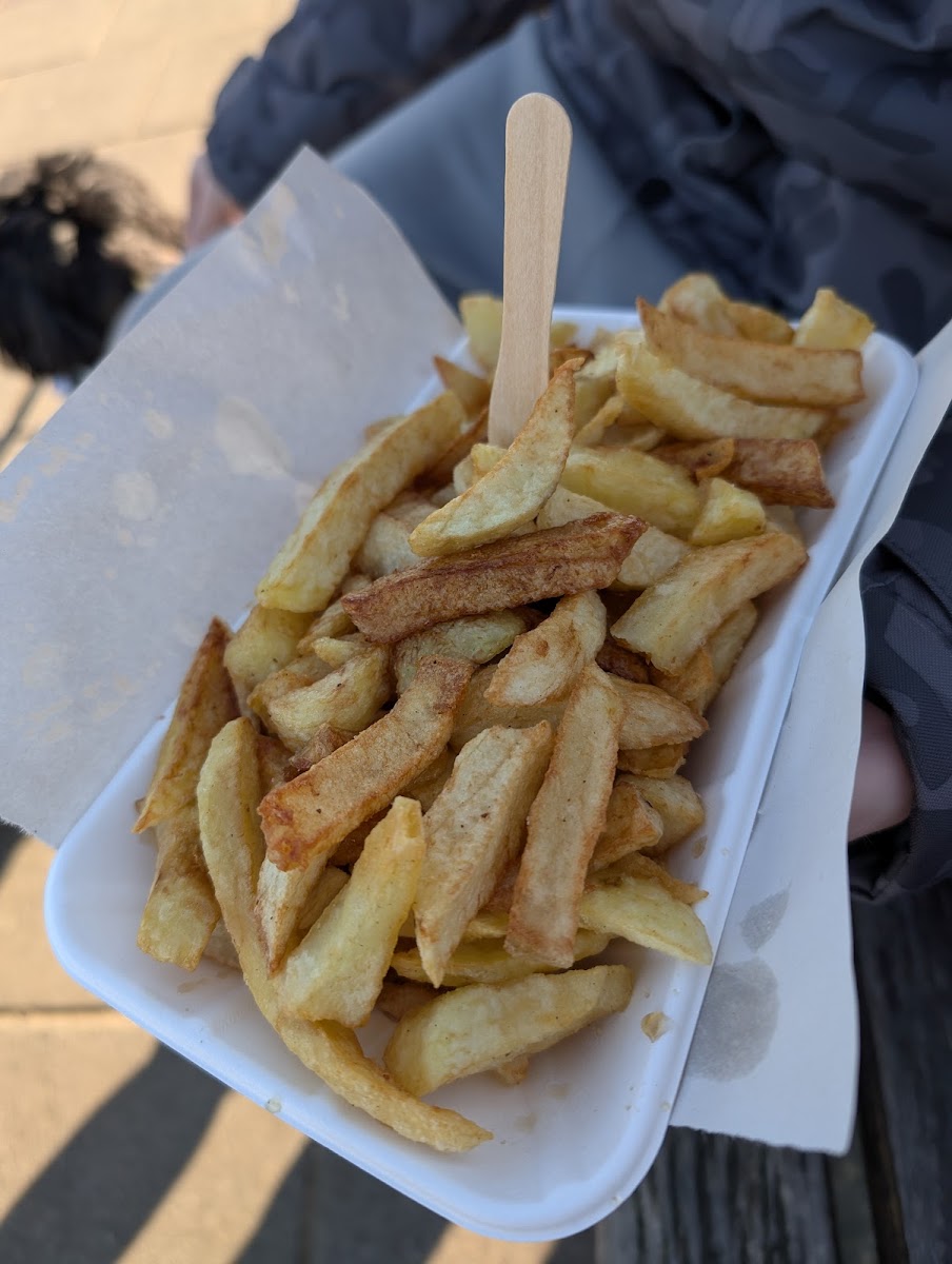 Came here for fish and chips, chips were soft and well cooked, fish was lovely! - I will be returning, good prices too, with lots of seating outside.